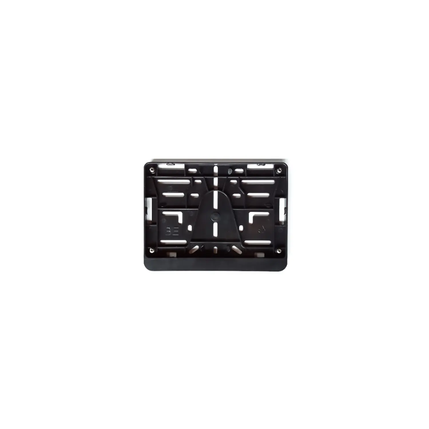 Support en plastique noir. Vis de fixation plaque non fournies. Pour nouvelle immatriculation belge 14×21.